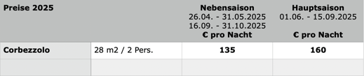 Zusätzliche Person in 2+2 Appartements EUR 20 pro Nacht (ab 12 Jahre)