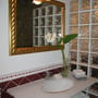 Das großzügige Bad mit seiner Natursteinmauer und handdekorierten Fliesen bietet eine geräumige Dusche und einen Marmorwaschtisch. WC, Waschbecken und Bidet aus Villeroy & Boch Porzellan. Die kleine, rot-weiß geflieste Küche mit Essplatz lädt zum gemütlichen Frühstück oder auch zu einem kleinen Dinner zu zweit ein. Sie ist komplett zum Kochen eingerichtet und verfügt über ein Cerankochfeld, Kühlschrank, Tchibo-Kapsel-Kaffeemaschine, Wasserkocher, Toaster, Gläser und Geschirr und Küchenutensilien. Es gibt jedoch keinen Geschirrspüler.